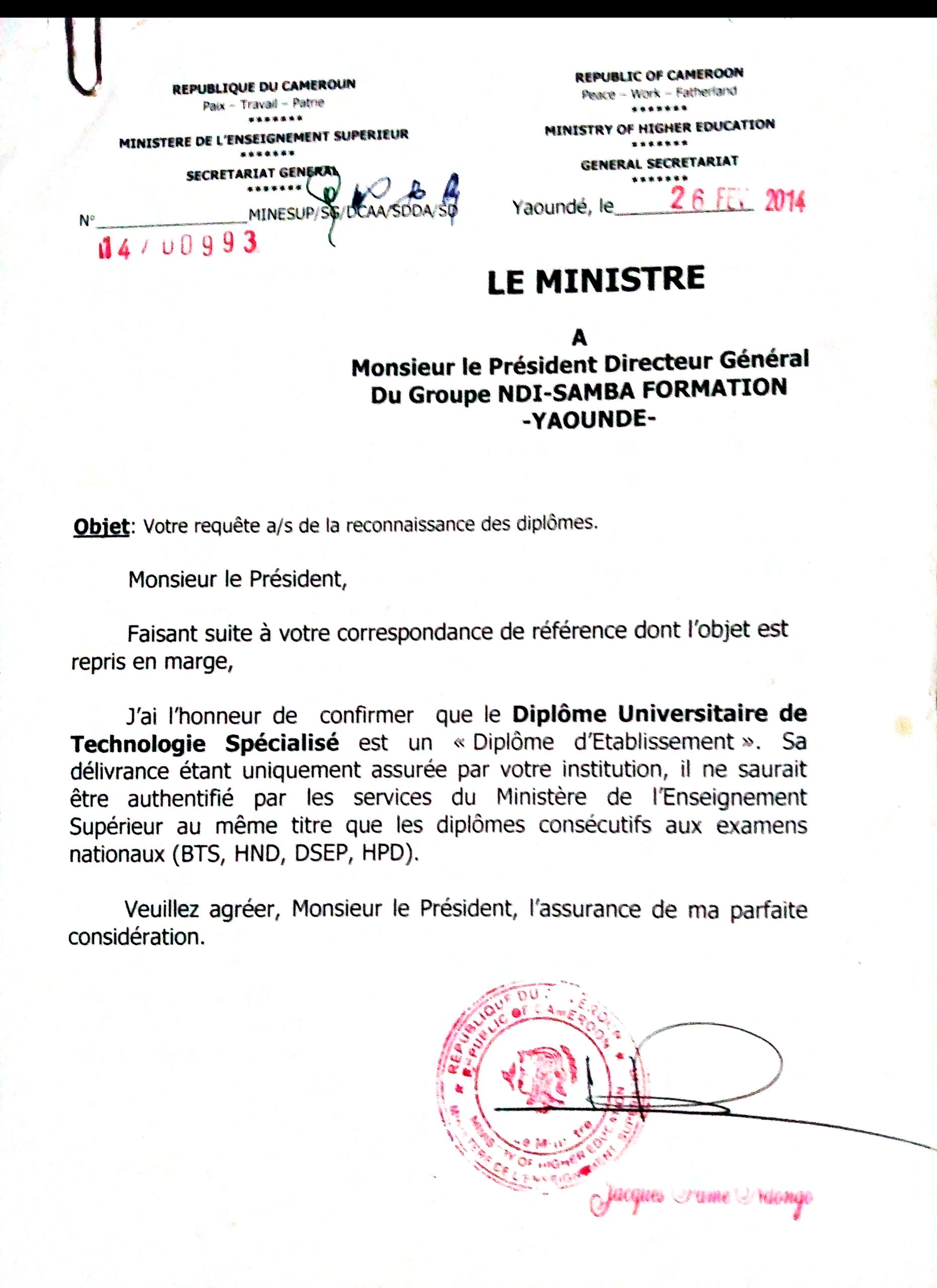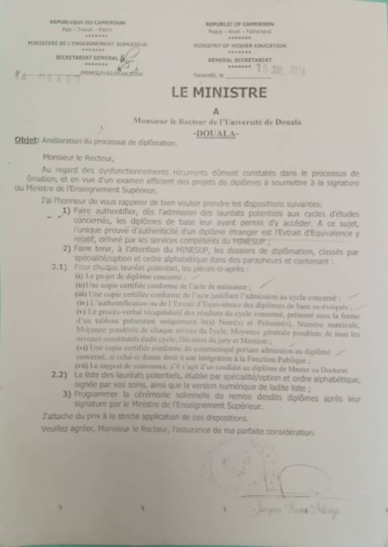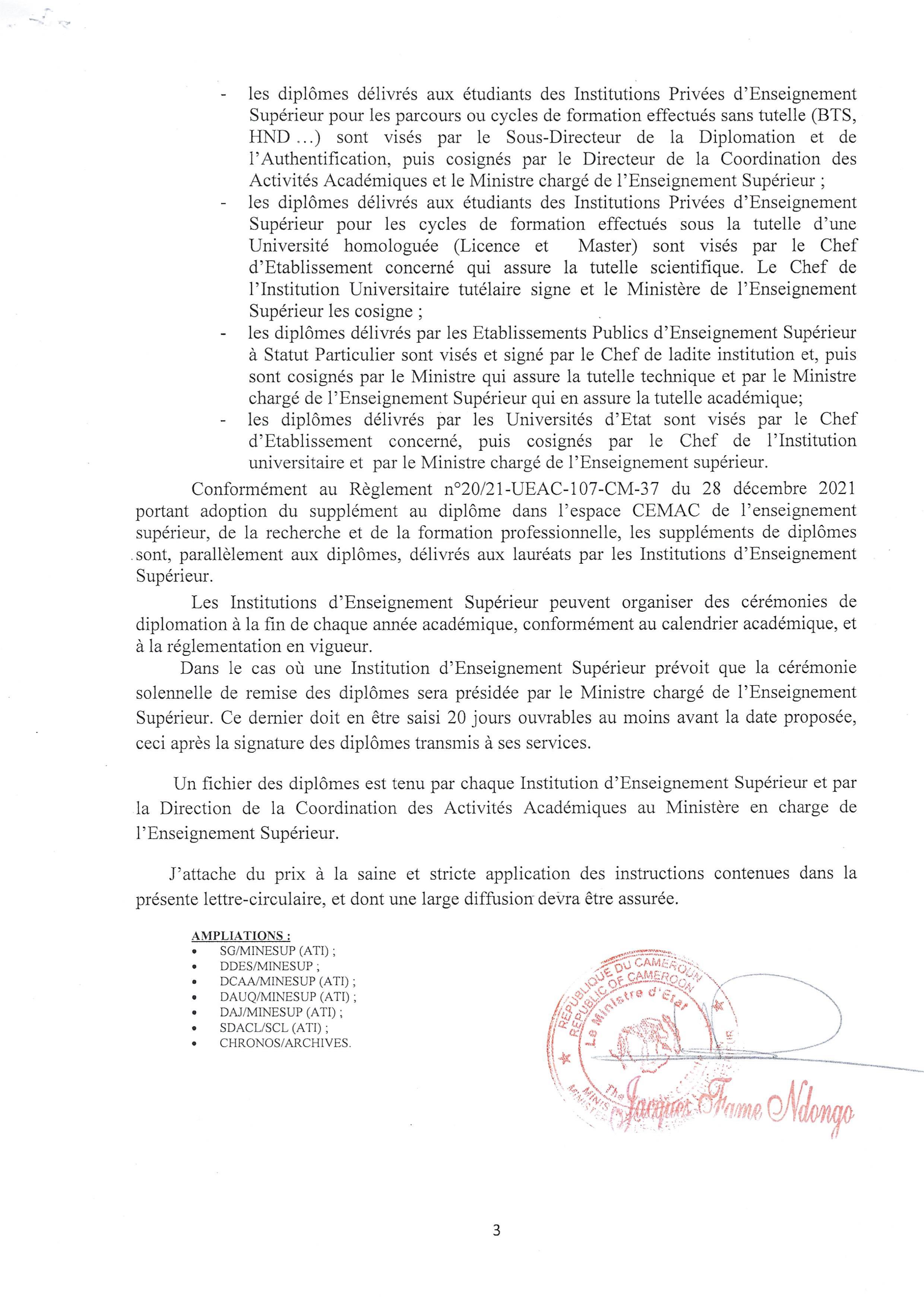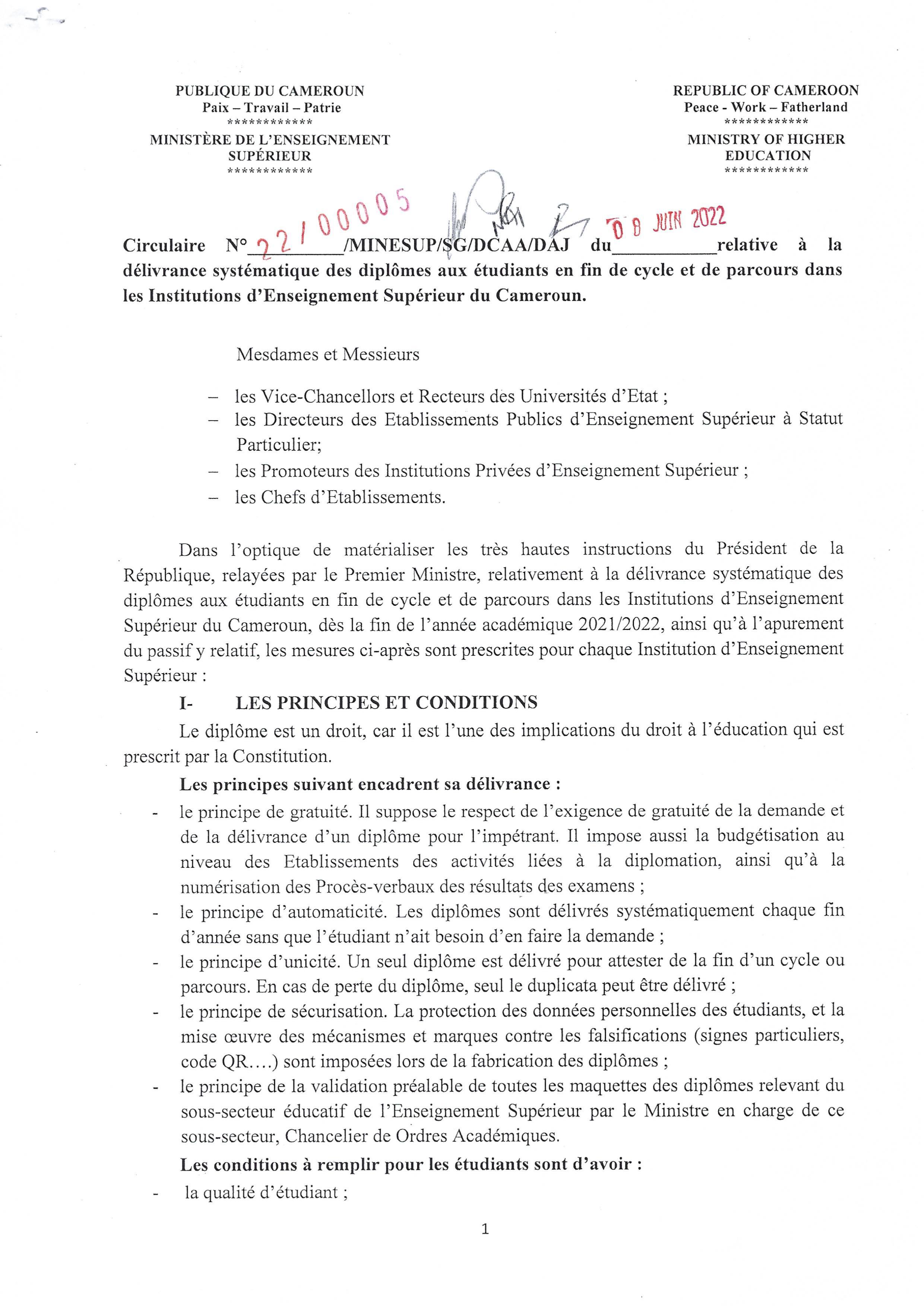 | – Note circulaire du MINESUP relative à la délivrance systématique des diplôme au Cameroun: Télécharger page 1, Télécharger page 2, Télécharger page 3 |