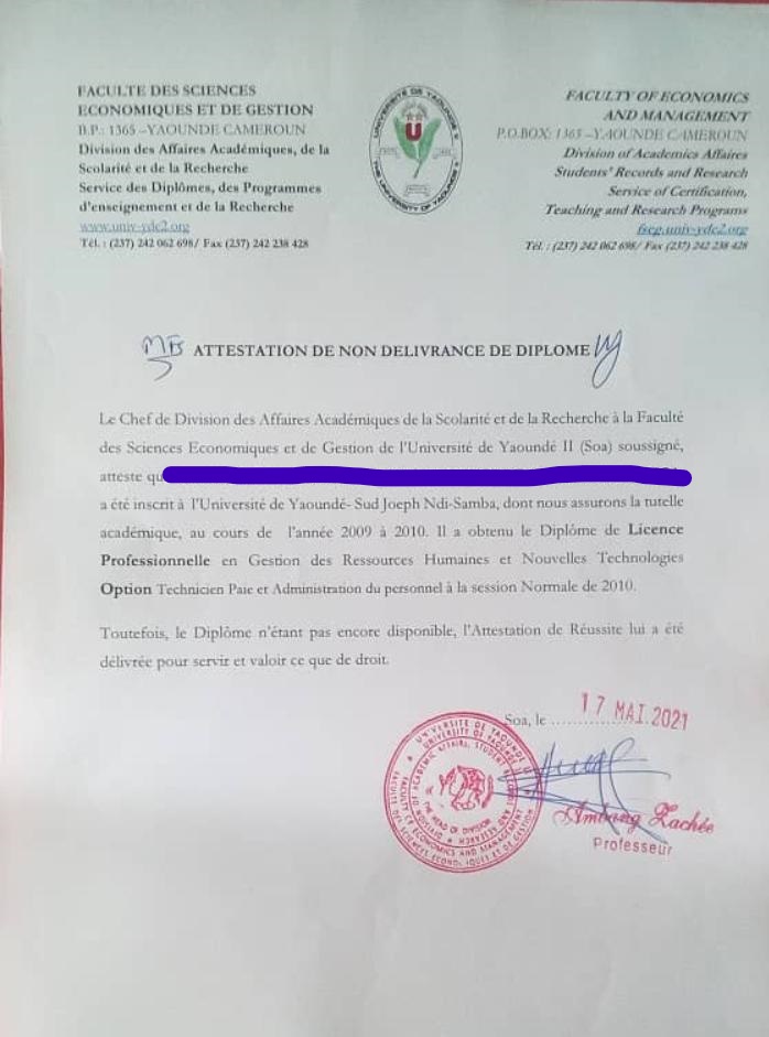 | – Exemple de Non-Délivrance de diplôme: Télécharger |