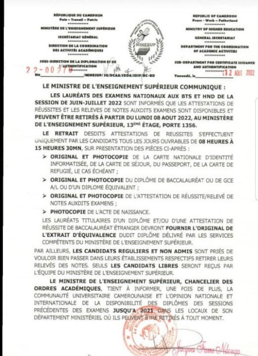 | – Communiqué pour retrait de parchemins au Minesup: Télécharger |