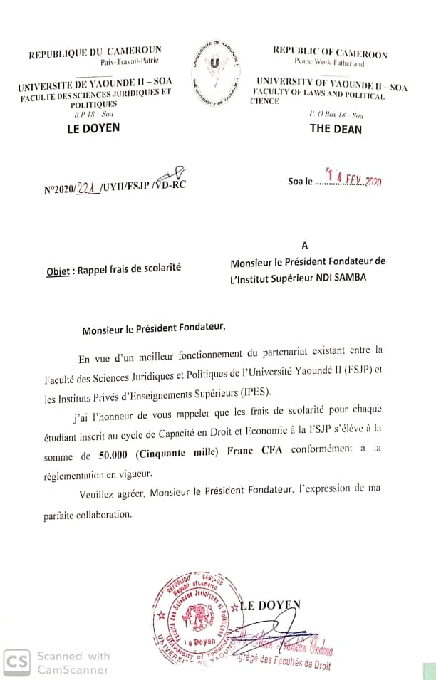 | – Cahier de charges de la tutelle académique de Yaoundé-II : Consulter |