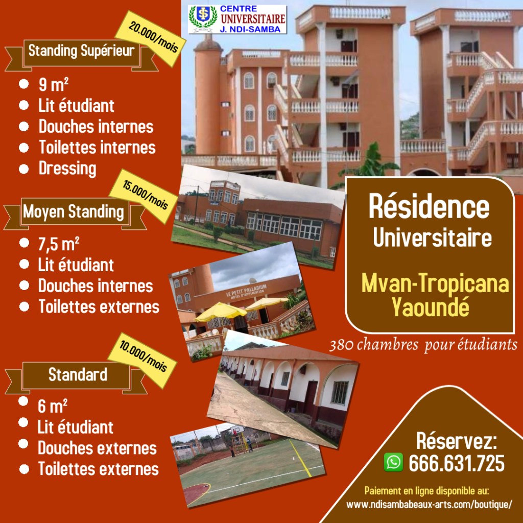 Le Groupe Ndi Samba Formations est le partenaire de référence de l’Université J. Ndi Samba et des Annexes de manière générale, disposant de plus de 600 logements sur le site de Mvan-Tropicana.
